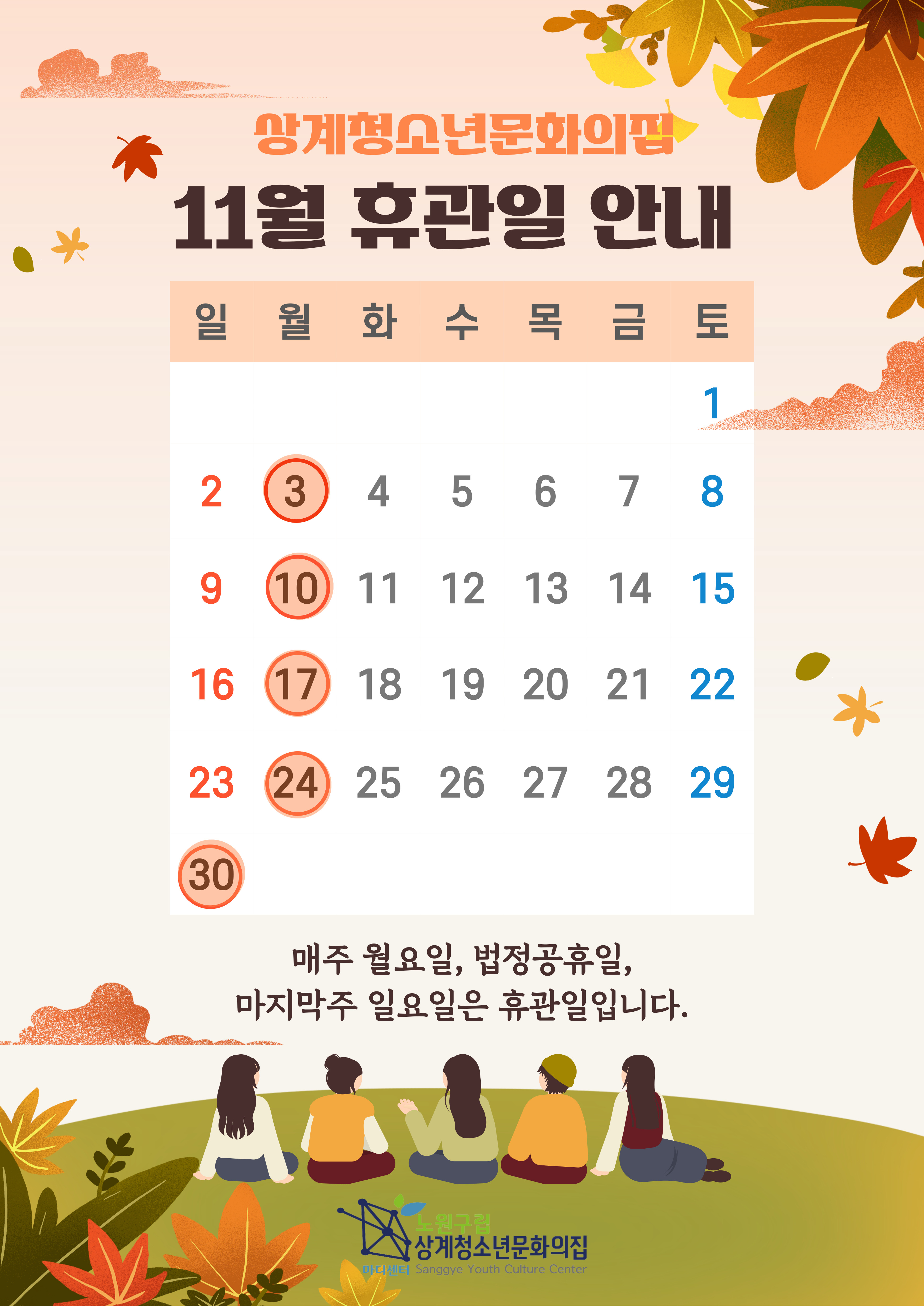 월요일 및 법정공휴일은 휴관일 입니다.