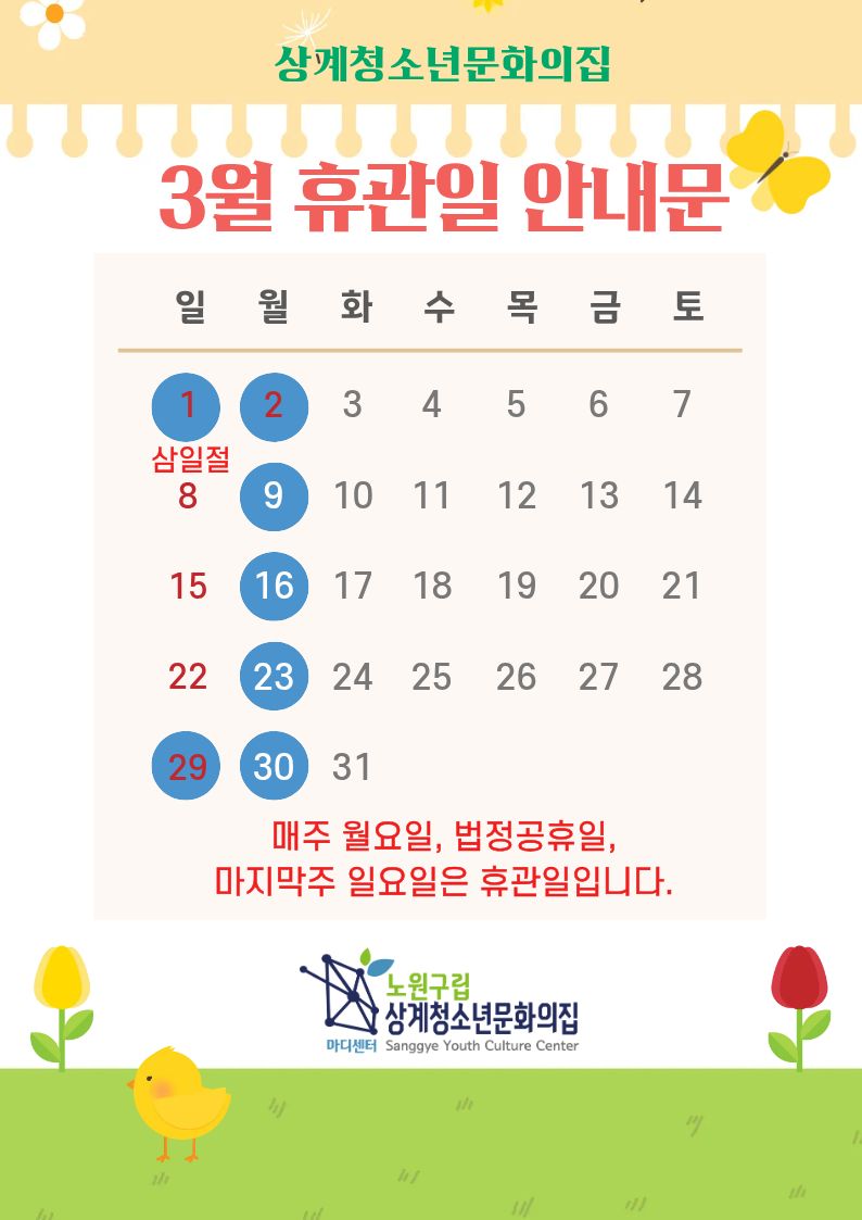 •월요일 및 법정공휴일은 휴관일 입니다.