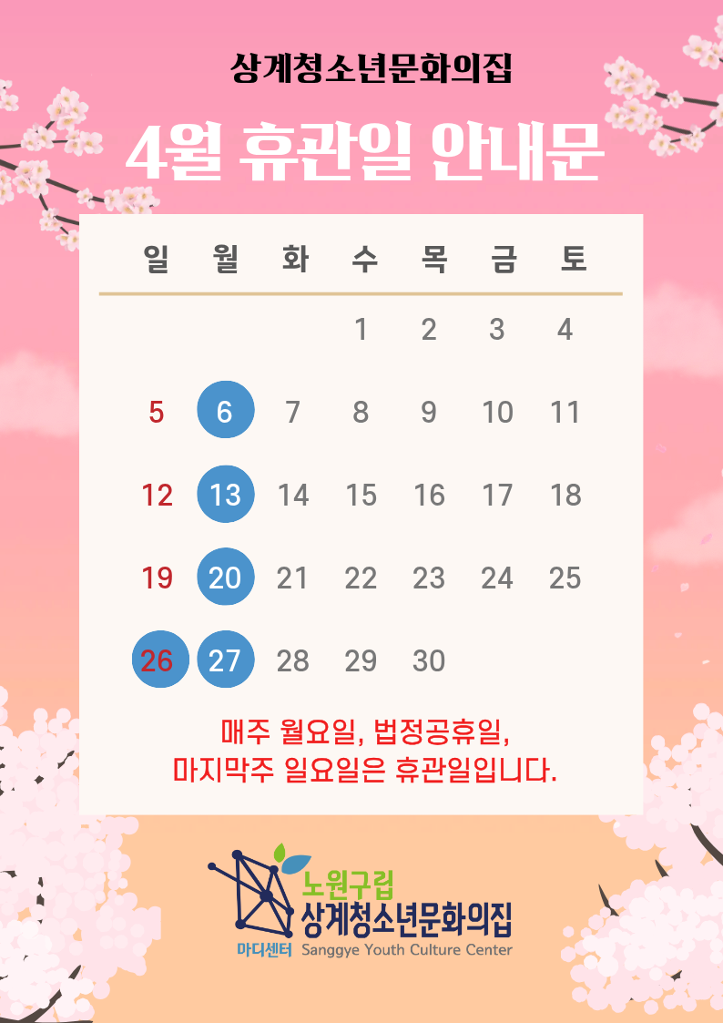 주소 : 서울특별시 노원구 동일로230길 6(상계동 966-15), 상계청소년문화의집